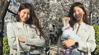 In the post, she wrote, “Cherry blossoms are in full bloom in Tokyo,” and showed a shot of her wearing a light blue spring-like …