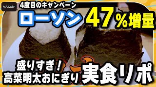 【実食リポ】ローソン“47%増量”「盛りすぎチャレンジ」 鈴木咲が「盛りすぎ!高菜明太おにぎり」の増量をリポート